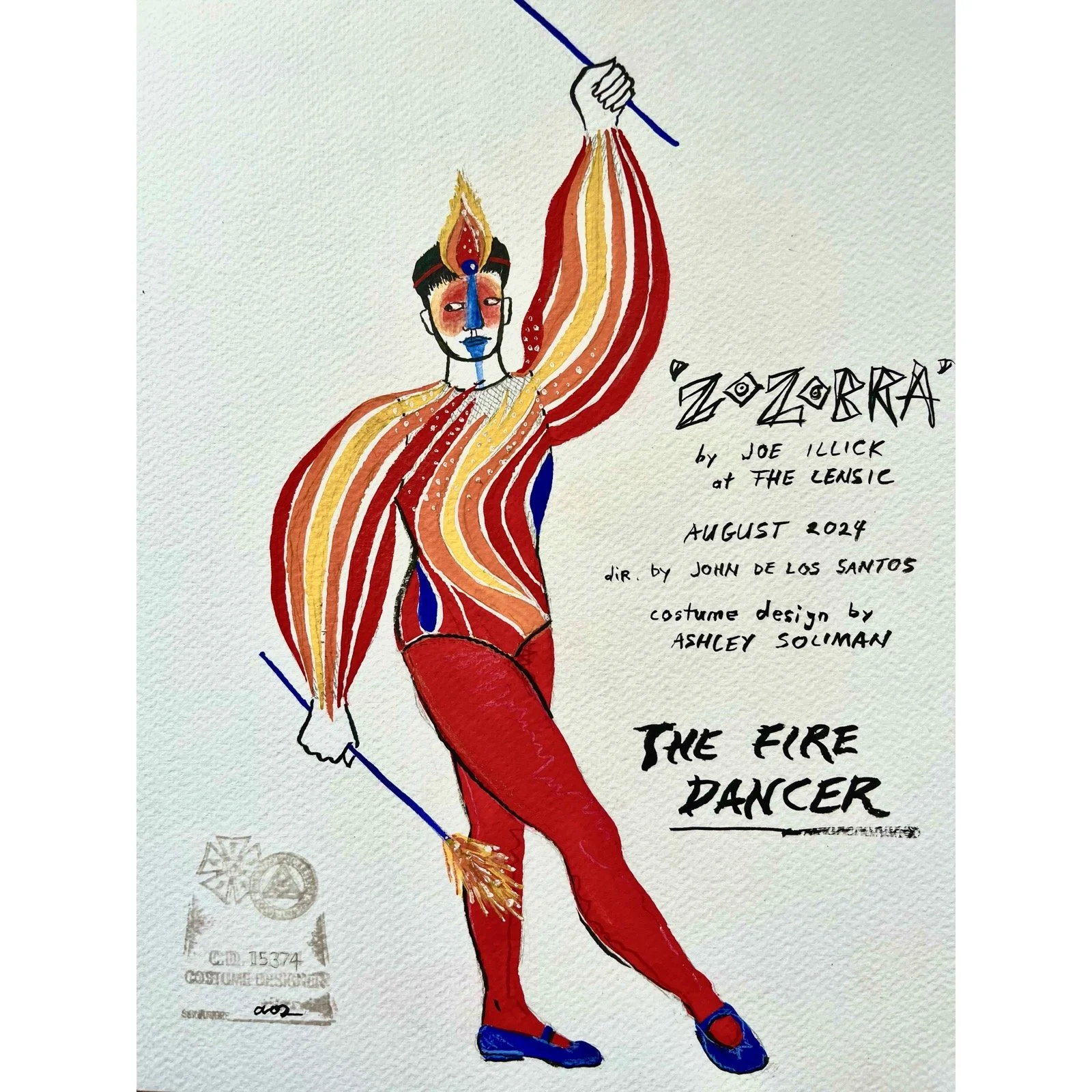 Costume design and costume crafts for three adult principals, twelve adult chorus, thirteen children, and one dancer. Fire Dancer built by Kyle Pearson and Sharone Malka, Zozobra ensemble and puppet built by Camille Labarre.